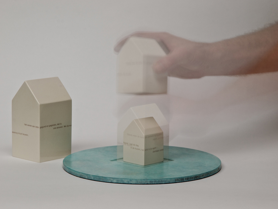 Het ontwerp bestaat uit vier huisjes van keramiek, die allemaal een deel van de woningwereld vertegenwoordigen en die allemaal ook hun deel van de verantwoordelijkheid dragen. Van groot naar klein: de staat Nederland, de vereniging Aedes, de woningcorporatie en ten slotte het huurhuis. Zij dragen alle vier een aspect van Hestia in zich. De staat Nederland in de vorm van artikel 1 van onze Grondwet, waarin het gelijkheidsbeginsel staat, Aedes als vertegenwoordiger en bewaker van de eenheid onder woningcorporaties, de woningcorporatie als directe beschermer van de huurder die woont in een huis waar hij zichzelf kan zijn.