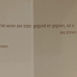 Op elk huis staan vier dichtregels die betrekking hebben op dat huis. Samen vormen zij het 16-regelig gedicht dat Hein Walter voor dit project maakte, ‘Het wonen aan ieder gegund en gegeven, dat is ons streven’.