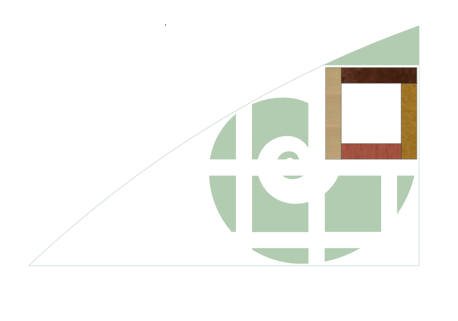 Met al deze ingrediënten in mijn achterhoofd ontstond een plan. Ik zag een kavel voor me met de verhoudingen van de gulden snede. Van oudsher bekend als een harmonieuze verhouding. Geen afzonderlijk lapje grond maar een onderdeel van een groter geheel. In een grote cirkel waar deze kavel zo tegen de rand ervan is geplaatst dat deze gulden snede rechthoek een driehoek is geworden waarvan de hypotenusa geen rechte lijn is maar onderdeel van de cirkellijn.