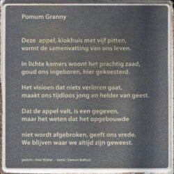 Bij het beeld is het volgende gedicht van Hein Walter geplaatst.Pomum Granny