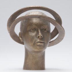 Het beeldje ‘twee is een idee’ had daarin een functie. Het is een portret van een jong mens met een onbevangen uitstraling. Zijn hoofd is letterlijk omringd met wat lijkt op twee ringen. Er om heen lopend blijkt het één doorgaande beweging. Een dubbel gevouwen lemniscaat. Symbool voor de fusie maar ook voor al die gevoelens en gedachten die zo tegenstrijdig lijken in dit proces maar wellicht een bron van inspiratie kunnen zijn.