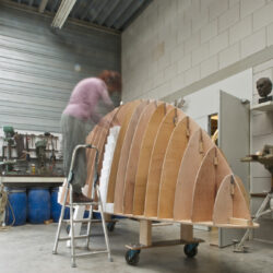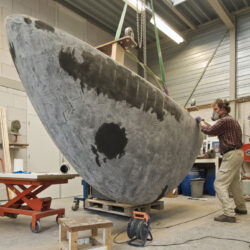 Voor mij betekent dit dat ik geen siliconenmal op het model hoef te maken maar de bronsgieterij een hard model aanlever. Het boot-gedeelte van het beeld maak ik eerst en dat wordt apart van de hand gegoten.