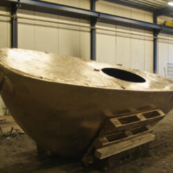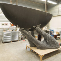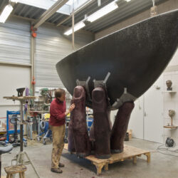 Bronsgieten is spannend. Ik weet wat er allemaal fout kan gaan. Maar dit is een heel mooi gietsel. De afwerking van het gietsel wordt helemaal gedaan door Gieterij Borcherts. Het ruwe gietsel slijpen tot een mooi strak geheel is een klus. Maar het wordt goed en mooi.