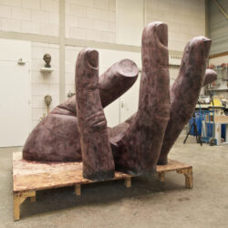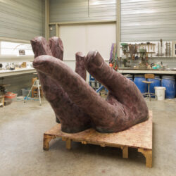 Het boetseren neem veel tijd. Ondertussen is het half april. De hand kan naar de bronsgieter.