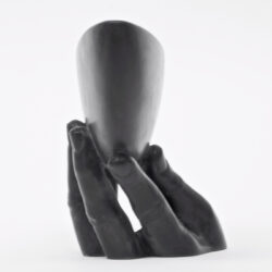 Daarmee kom ik op voor mij vakinhoudelijke aspecten. Voor mij, als beeldhouwer is de plastische kwaliteit van het beeld heel belangrijk. Dit ontwerp toont zich onder elke hoek op een geheel andere manier. Het gezegde ‘een beeld heeft duizend kanten’ gaat hier goed op. Als beeldhouwer wil ik graag de aardse materie licht laten lijken. Liefst laat ik een beeld zweven. Deze oplossing met de vingers gaat in deze richting. Ik ben ook blij met de samenkomst van abstractie en figuratie, die elkaar hier versterken.